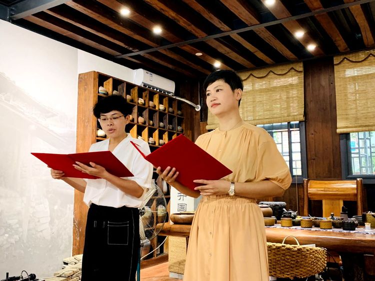 讀書會(huì)現(xiàn)場(chǎng),香茶鮮果飄香,古箏雅韻和鳴,參加活動(dòng)的不僅有麗汽集團(tuán)讀書會(huì)的讀友,還有來(lái)自麗水朗讀團(tuán)的嘉賓。他們當(dāng)中還有兩位麗水朗讀界的大咖,國(guó)家一級(jí)播音員文馨老師和麗水廣電總臺(tái)的主任播音員海峰老師。