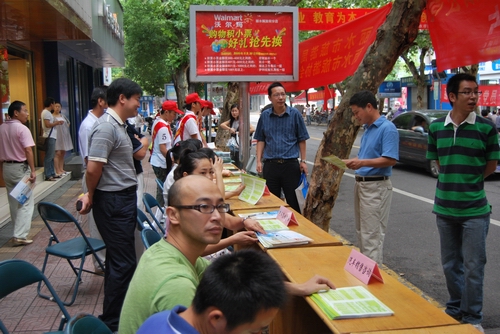9月19日七時許,雖然麗水上空飄著毛毛細雨,但是這雨沒能擋住集團公司黨員服務(wù)隊為民服務(wù)的熱情,一行20人在黨委副書記薛和有的帶領(lǐng)下,早早就在市區(qū)中山街鬧市區(qū)擺開了陣勢,參加市直機關(guān)黨工委組織的黨員一條街便民服務(wù)活動。