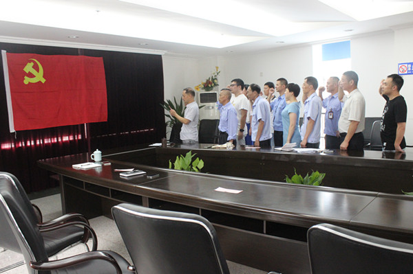 走進(jìn)西站會(huì)議室,鮮紅的黨旗特別的搶眼。會(huì)議召開(kāi)前,全體黨員面對(duì)黨旗舉起右手、手握拳頭,用鏗鏘有力的聲音,重溫入黨誓言,再一次體會(huì)到作為一名共產(chǎn)黨員的責(zé)任感和使命感。